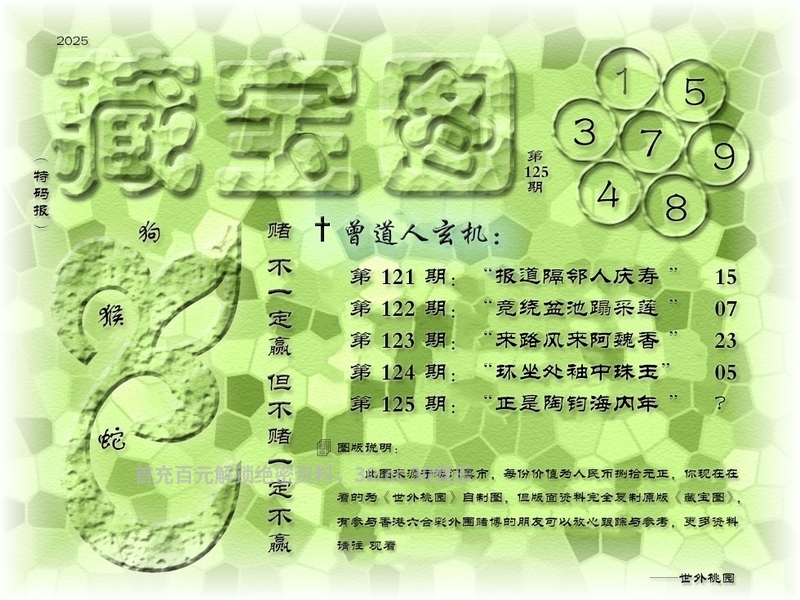126期藏寶圖新:造化无心本不知 老:流到前溪无半语 禁:兔 禁:8尾 玄機字:《离》